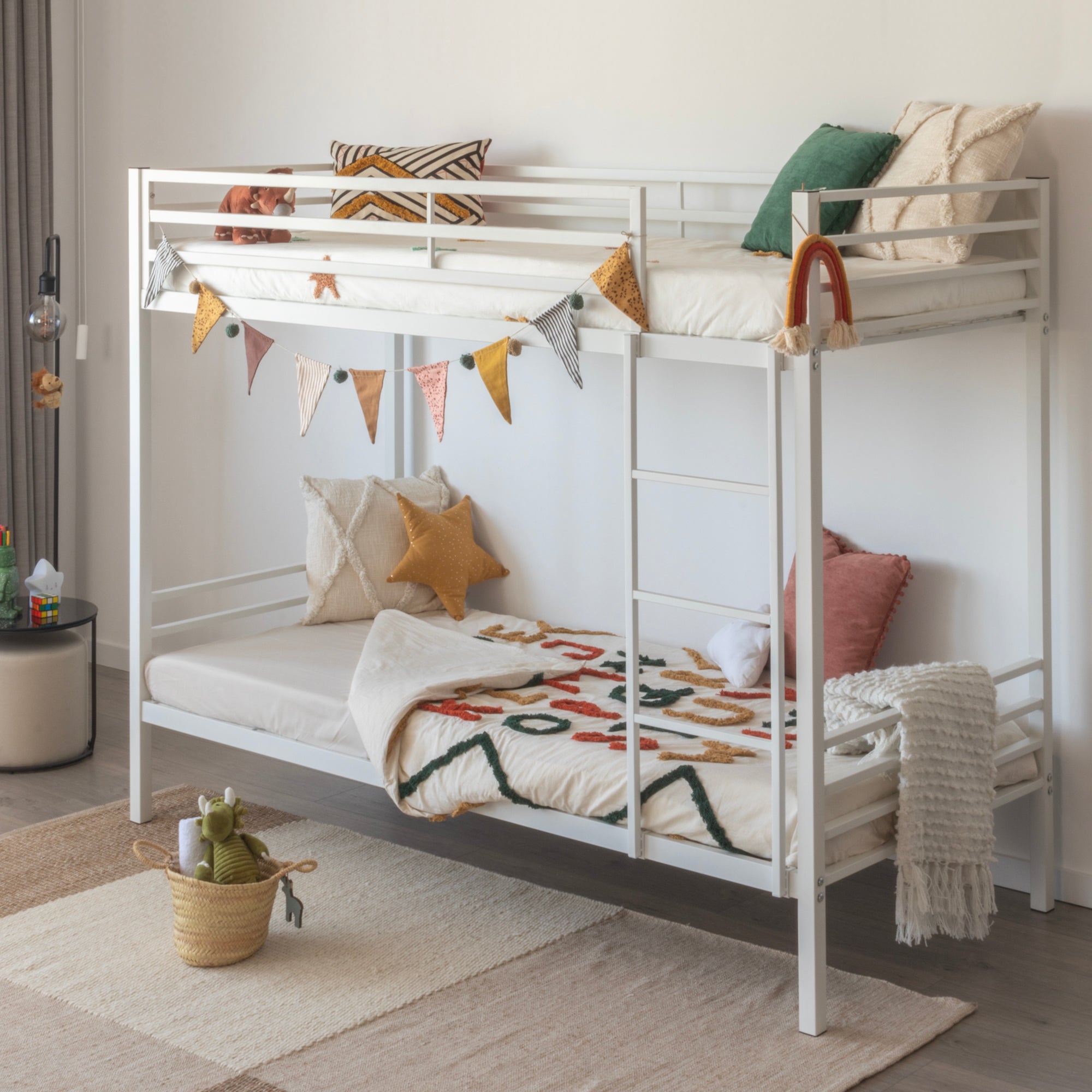 NAMARA – Cama com estrutura metálica e ripas amortecidas, arrumação 25 cm - Preto ou Branco