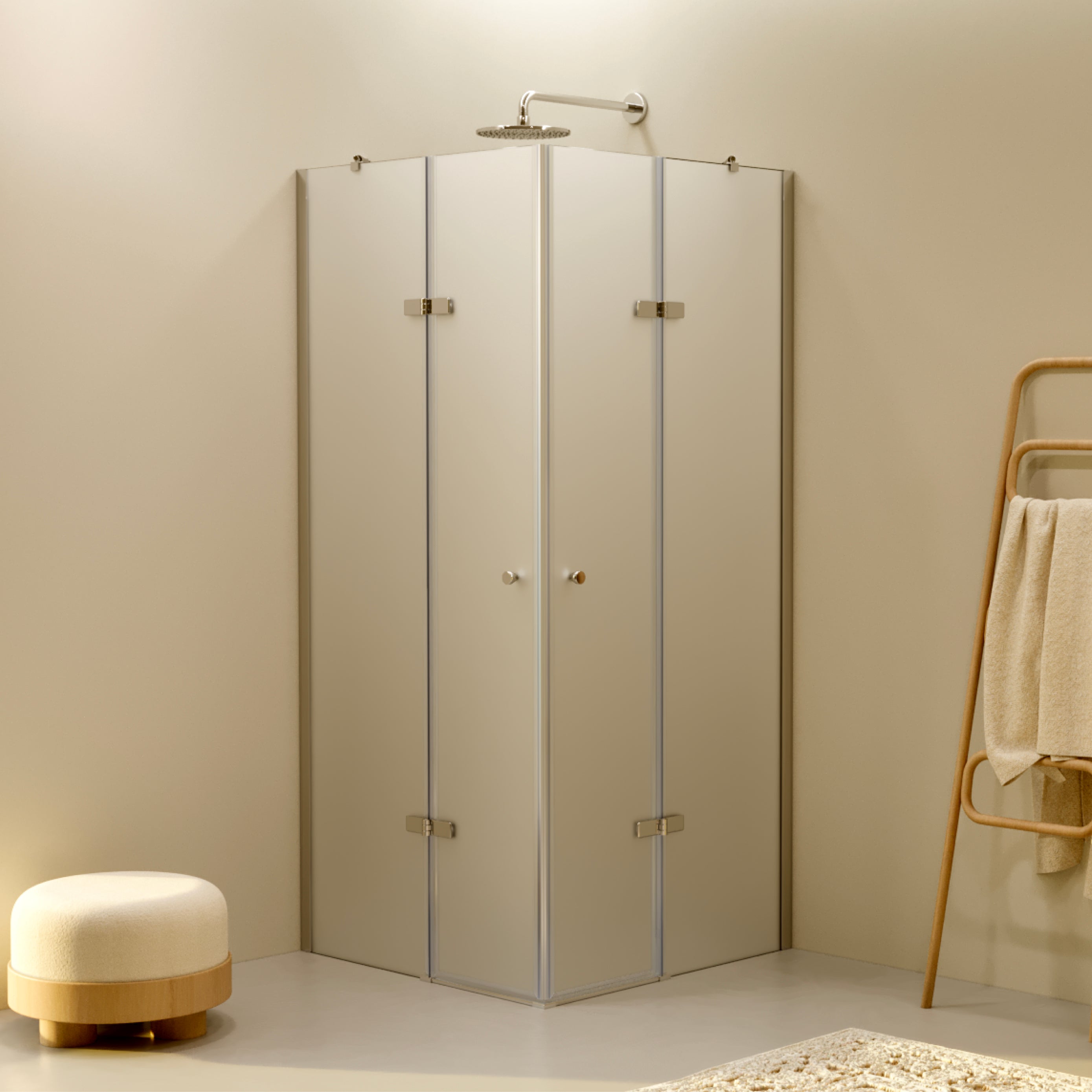 LENA - Frontal de duche com portas dobráveis em vidro temperado fosco