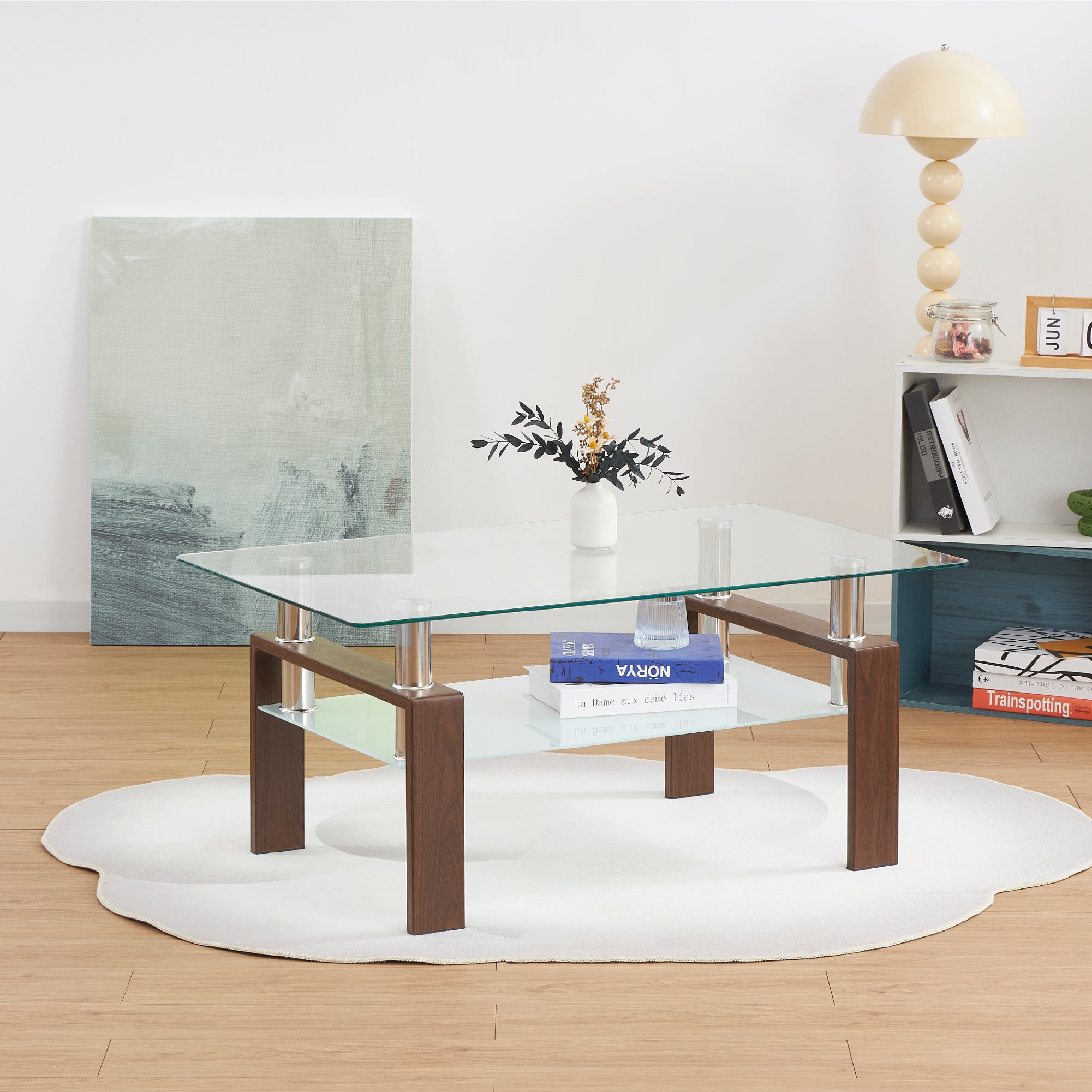 Conjunto de Mesa e Cadeiras Felicia Hemans, Estrutura Metálica Efeito Madeira