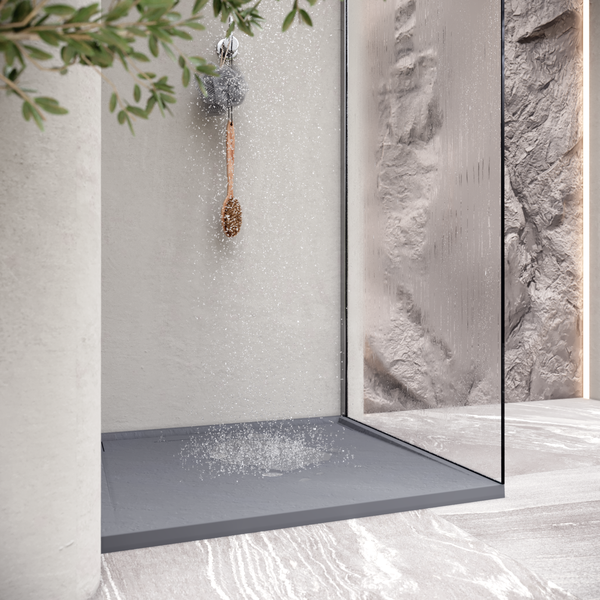 BOREAL - Base de duche preta antiderrapante, resistente, duradoura e fácil de limpar - Inc. sifão