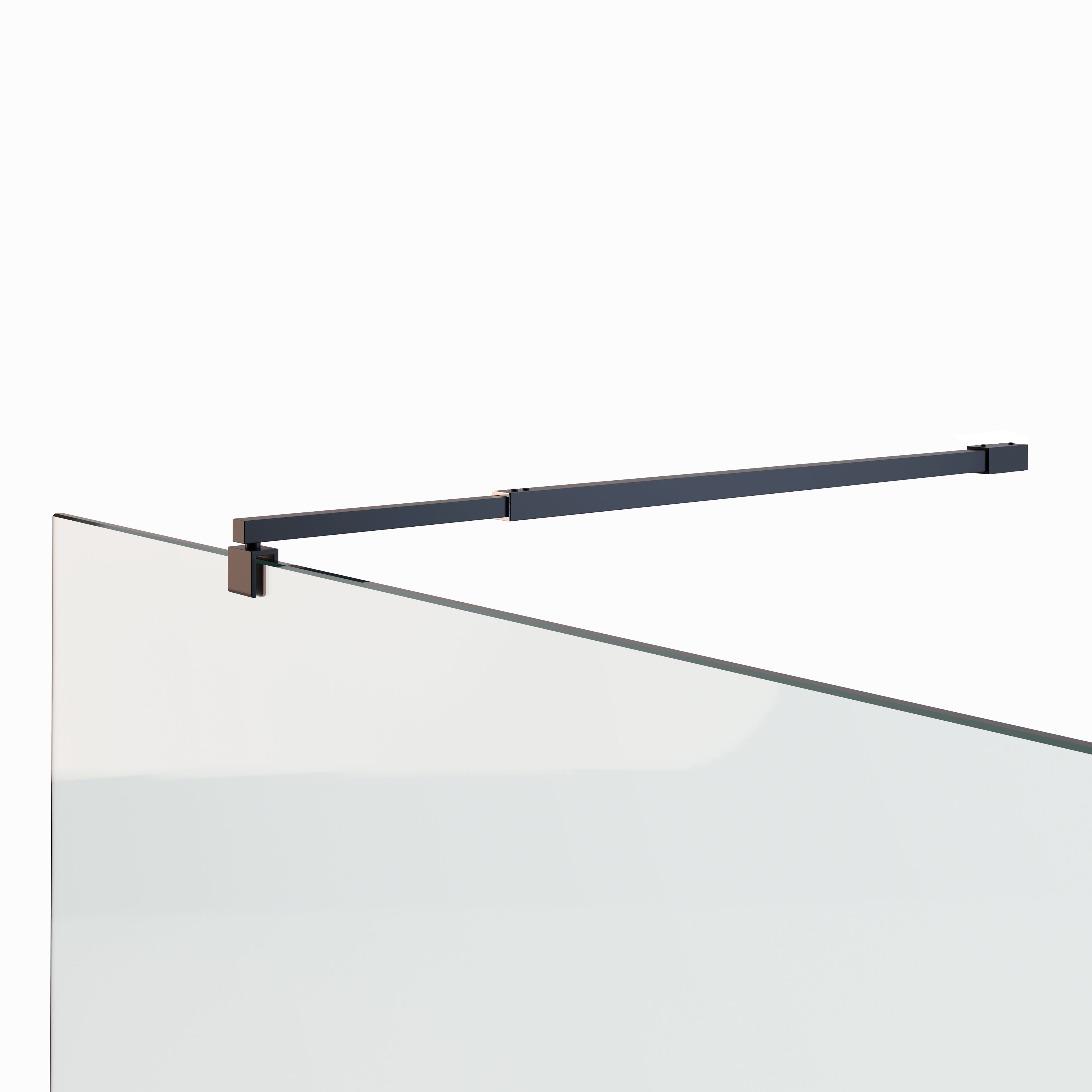 GIANNA – Painel de Duche Walk-In com 2 Painéis em Vidro Temperado c/ Blocos e Perfil Preto com Barra Estabilizadora