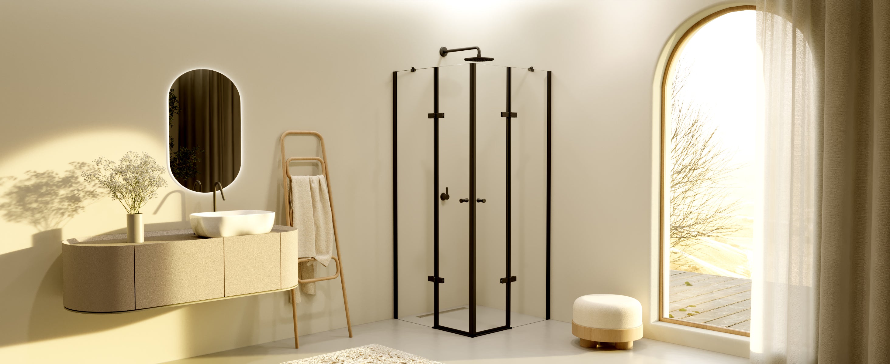 Apresenta vidro transparente ESG com 8mm de espessura e elegantes perfis pretos. Com 200cm de altura, cria uma sensação de espaço, enquanto o nano-revestimento facilita a limpeza. O seu design sem moldura exala um estilo moderno e minimalista, perfeito para soluções de casa de banho elegantes e abertas.