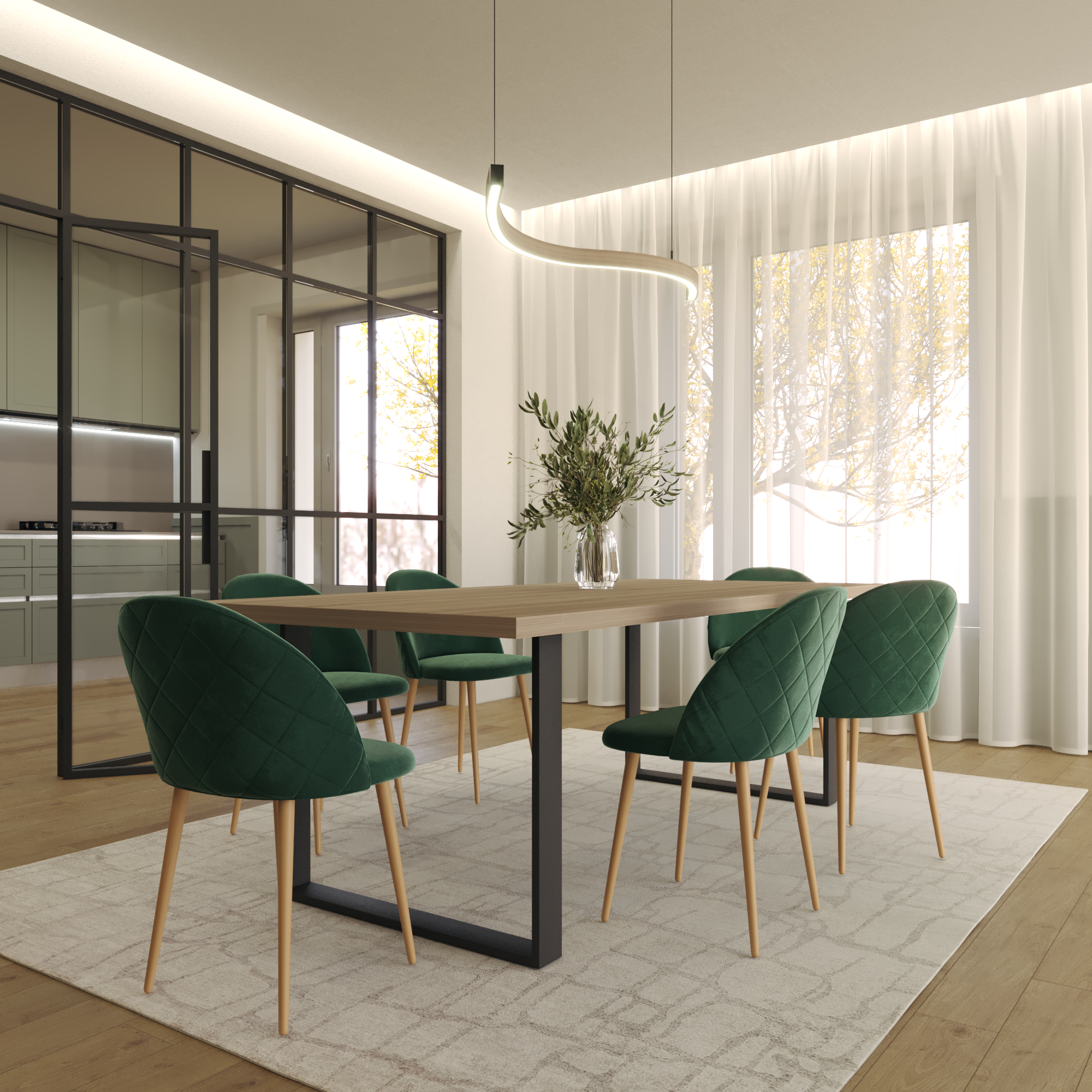 DAHLIA - Conjunto de 2 cadeiras de Refeição em tecido PU ou Veludo